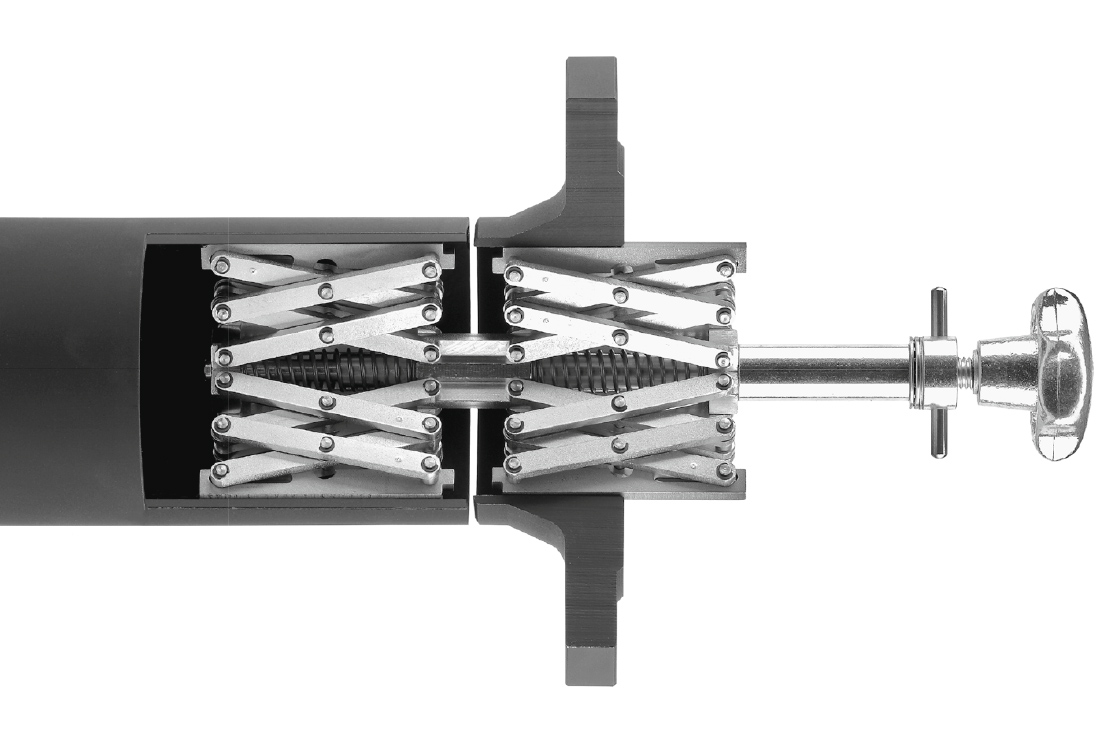 Auf Anhieb schnelles, sicheres und genaues Zentrieren und Spannen von Flanschen, Stutzen, Ringen etc. an Rohren und zylindrischen Behältern. Mit Anlagefläche für Glattflansche. Automatischer Durchmesserausgleich auch extrem unterschiedlicher Durchmesser. Ohne zusätzliche Justierung, in einem Arbeitsgang, mit einem Handgriff, ohne Helfer, ohne Zwischenkontrollen. Zentrierung erfolgt von innen. Zur Vermeidung elektrolytischer Korrosion werden alle Grössen mit Auflageschienen aus Edelstahl (VA 1.4301) gefertigt.